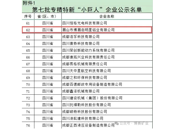 博眉啟明星鋁業(yè)有限公司榮獲四川省專(zhuān)精特新“小巨人”企業(yè)稱(chēng)號(hào)